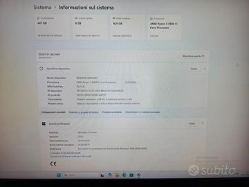 Vendo PC assemblato nel 2024, pronto all'uso. PC usato poco e perfetto per gaming pesante a 1080p o leggero a 1440p. CPU: AMD Ryzen 5 5600 (6 core / 12 thread) GPU: Radeon RX 6650 XT 8GB RAM: 16GB DDR4 3600MHz Corsair Vengeance Scheda madre: Gigabyte B550M DS3H SSD: Kingston 480GB SSD Disponibile per ulteriori prove o foto, Windows 11 installato da attivare. Possibilità di vendere pure le periferiche necessarie (Monitor/Tastiera/Mouse) Consegna a mano in zona Lucca.