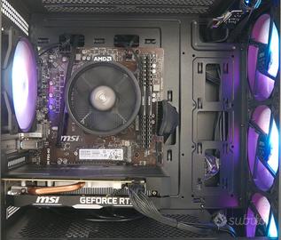 Ottimo pc da gaming con windows 11 25H2 già installato attivo. Fortnite installato configurato e ottimizzato. -CPU AMD Ryzen 5 2600x: Numero di core 6 - Numero di thread 12 - Frequenza turbo massima 4.25 GHz - Frequenza base del processore 3.6 GHz - Cache 16 MB -SCHEDA MADRE: MSI B450M PRO-M2 Chipset AMD® B450 chipset Memory 2 x DDR4 memory slots, support up to 32GB Supports DDR4 1866/ 2133/ 2400/ 2667 MHz by JEDEC, and 2667/ 2800/ 2933/ 3000/ 3066/ 3200/ 3466 MHz by A-XMP OC mode Dual channel memory architecture Supports ECC UDIMM memory (non-ECC mode) Support non-ECC UDIMM memory See supported memory Slots 1 x PCIe 3.0 x16 slot Supports x16 speed with AMD® Ryzen™ 1st and 2nd Generation processors Supports x8 speed with AMD® Ryzen™ with Radeon Vega Graphics processors 2 x PCIe 2.0 x1 slots -SCHEDA VIDEO: MSI GeForce RTX 2060 VENTUS GP OC MSI GeForce RTX 2060 VENTUS GP OC Scheda Video Gaming, 6GB DDR6, 1710MHz, 14Gbps, 192 bit, 3x DP, 1x HDMI 2.0b, alimentazione 8 pin -MEMORIA: CORSAIR DDR4 RAM 16GB (2x8GB) 3000MHz CL15 Intel XMP 2.0 -CASE PC MSI MAG FORGE M100R Mini-Tower PC Case - Vetro temperato, Micro-ATX Mini-ITX, pannello frontale Mesh, 4 ventole ARGB (120mm) con controller Hub, filtro antipolvere magnetico, porta USB 3.2 Gen1 Type-A -PSU ITEK BD500 500W, 80Plus EU Bronze, PFC Attivo, Ventola HDB 12cm, DC to DC Gli alimentatori della serie BD sono disponibili con potenze da 500W, 600W e 700W e un efficienza dell’88% al 50% di carico la quale ha permesso di ottenere la prestigiosa certificazione 80Plus® EU Bronze. -DISCO(NUOVO): SAMSUNG 512GB NVM ESPRESS 1.3