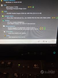 Vendo ottimo pc Gaming low budget ottimo per iniziare a giocare,sistema operativo Windows 11 64bit appena installato e aggiornato completo di alcuni programmi tra cui pacchetto office 2013,monitoraggio temperature,ecc...il pc riporta le seguenti caratteristiche : Scheda madre AM4 MSI B450M PRO-M2 MAX - processore Amd Ryzen 7 2700 da 4,10ghz (8Core/16Threads) - 16 gb Ram ddr4 3000mhz - Ssd m2 Micron da 256gb - hard disk 1tb - scheda video AMD RX5500XT da 8gb ddr6 - dissipatore cpu originale AMD - 4 ventole rgb 120mm - alimentatore SFP da 350w 80plus bronze - case nero Aeroccol con laterale in plexiglass oscurato ...il tutto testato e perfettamente funzionante,ovviamente è possibile testare di persona il pc...omaggio profilo epic games con un pò di giochi....disponibilità anche di monitor su richiesta..per informazioni 3405226737 o whatsapp..." non scambi e perditempo " solo gente seria!