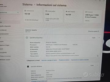 Vendo Stupendo Pc da Gaming appena assemblato... Il Pc è composto dalla seguente componentistica: Case Gaming NUOVO Alimentatore Cooler Master 650W Scheda Madre MSI MPG X570 Gaming Plus Cpu Ryzen 7-3700X 3.60 GHz 8 Core 16 Thread SSD M2 da 1 Tb Gen4 16 Gb Ram DDr4 Fury Scheda Video RTX 2070 Super MSI da 8 Gb Dissipatore a Liquido 240 Itek NUOVO 6 Ventole RGB NUOVE Licenza Windows 11... Il Pc viene fatturato con 2 anni di Garanzia...