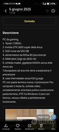Vendesi pc da gaming ottime condizioni. Caratteristiche in foto!