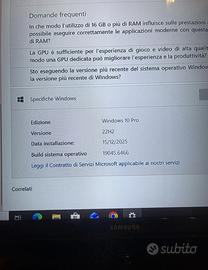 •Sistema operativo: Windows 10 Pro installato e ripristinato