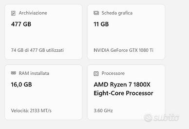 Vendo PC fisso assemblato, appena rientrato dal tecnico per manutenzione/ripristino. Ideale per gaming 1080p/1440p e utilizzo generale.