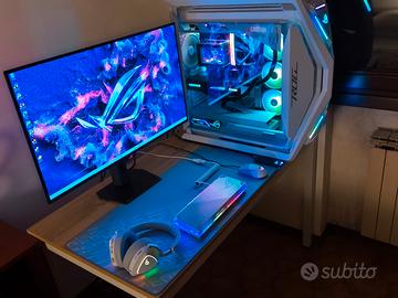 Vendo per inutilizzo il mio PC ideale per il gaming fino a 4K e produttività. Monta tutte componenti ASUS Rog di fascia alta ed è stato assemblato da un negozio professionista noto nel settore. - Monitor e periferiche escluse- - Non Spedisco - consegna a mano - Motherboard: Asus X870E Apex CPU: Ryzen 9 9950X3D fino @5.7 ghz Dissipatore Ryuo iv Slc 360Argb Ram: 64Gb Corsair Venegance RGB 6000Mhz cl30 SSD: Corsair MP 600 Pro Nvme da 2TB Scheda Video: ASUS Rog Astral 5090 LC Alimentatore: ASUS Thor III 1200W Platinum Case : ROG Hyperion GR701 Bianco. Tutti i componenti godono di garanzia con ricevuta di acquisto . Build testata con software professionali come OCTT, 3DMARK, CRYSTAL Mark e MemTest86 Visti i prezzi di mercato, NON sono disposto a calare il prezzo della mia workstation. Pagamento via bonifico bancario o PayPal