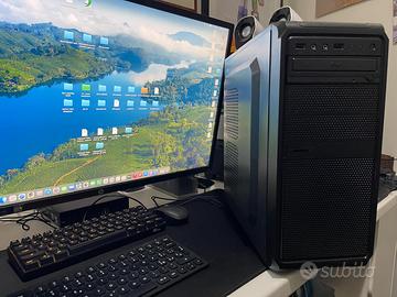 Hackintosh PC Desktop composto da scheda madre Asrock H110-DVS, i3 7100, 8Gb DDR4, Intel UHD 630 , SSD 120GB già inzializzato con MacOs Tahoe 26.2 e perfettamente funzionante (audio, rete, video, usb). Possibilita' di installare Windows in dual boot e scheda wifi- Bt per attivare airdrop ed handoff. Piccoli segni di usura sul case.