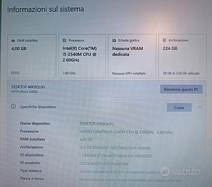 Processore Intel Core i5 2540M CPU RAM 4 GB vedi foto allegata per altre caratteristiche. Solo con caricatore.
