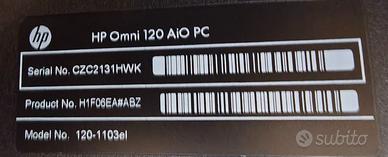 Vendo Computer Fisso All-in-One HP Omni 120 (modello 120-1103el). Il computer integra tutto all'interno dello schermo, eliminando il fastidioso "case" da tenere sotto la scrivania, basta attaccare la presa della corrente.