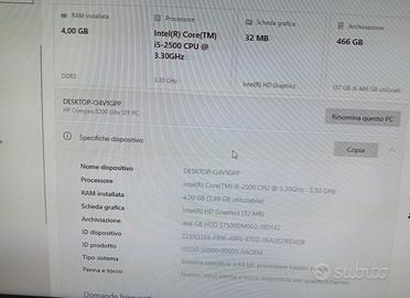Causa inutilizzo vendo PC HP Desktop Compaq 8200 Elite SFF PC perfettamente funzionante, usato pochissimo, completo di monitor SAMSUNG, tastiera QWERTY WETECH, connessione alla rete Wifi e ARJ45, completo di stampante HP Laserjet Pro M402dn (NO CARTUCCE COSTOSE, MA A TONER!!)