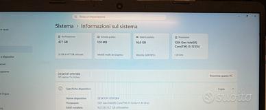 Buongiorno, Come dal titolo vendo usato ma in condizioni più che buone e perfettamente funzionante il pc portatile Hp (modello 15s-fq5022nl). Lo schermo presenta qualche imperfezione (vedi foto) che è quasi impercettibile durante l’utilizzo quotidiano e ha qualche segnetto sulla scocca ma niente di che, parliamo di micrograffi su un paio di angoli, se necessario mando altre foto in privato. Caratteristiche: Schermo: 15,6" pollici FullHd 1920x1080 Cpu: i5-1235U Gpu: Intel lrisXe Ram: 16Gb Ddr4 DualChanel 3200Mhz Ssd: 512Gb Nvme È presente il lettore delle impronte digitali. È stato appena installato Windows 11 ed aggiornato all'ultima versione + Pacchetto Office Batteria ottima e caricabatterie originale No perditempo #PC # portatile # dad # notebook # computer # asus # dell # ufficio # hp # i5 # i7 # i3 workstation # zenbook # thinkbook #thinkpad # gaming