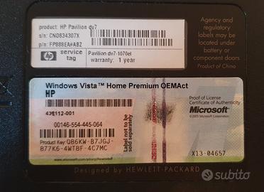 vendo PC usato hp Pavilion dv 7 funzionante ma con batteria eventualmente da sostituire (con cavo funziona perfettamente)