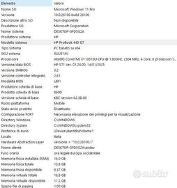 PC HP PROBOOK 440G7 core I7 usato pochissimo in più che buone condizioni. processore core i7 1.80 ghz 2304 mhz 4 core 8 processori 16gb ram ddr4 ssd da 512 GB NO garanzia. NO spedizione. batteria in ottime condizioni 164 cicli