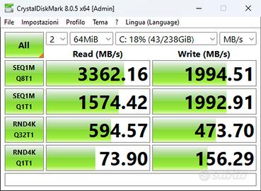 PC desktop compatto pronto all'uso perfetto per l' ufficio o per la casa o il gaming. HP ProDesk 600 G3 Small Form Factor di dimensioni ridotte (95 x 270 x 296 mm - H x L x P) con processore Intel Core i5-6500 (4core/4thread @3.2GHz/TDP 65W) grafica integrata Intel HD530 (tripla uscita video: 1x VGA; 2x DisplayPort). ... per tutte le altre caratteristiche consultare il sito del produttore. Aggiornato nell'hw e nel sistema operativo: - SSD M.2 NVMe SKHynix da 256GB (NUOVO!-v.immagine-velocissimo, montato sulla mainboard per prestazioni al TOP); La tecnologia NMVe offre prestazioni superiori, minore latenza, migliore efficienza energetica e una maggiore capacità di gestione delle operazioni di I/O rispetto alla tradizionale tecnologia SSD SATA. - HDD 3.5" HP da 500GB per archiviazione - RAM 2x8GB DDR4 Samsung PC4-2666 (gli altri 2 slot sono disponibili per ulteriori espansioni) - Sistema Operativo: Windows11 Pro 64bit 24H2 (fresh install) su SSD NVMe Dispositivo usato, ricondizionato personalmente, pronto all'utilizzo. No perditempo, solo se veramente interessati. Contatto via WhatsApp al numero scambiato via chat Subito.it. Scambio a mano a Bologna/Casalecchio. Spedizione con TuttoSubito. Offro e richiedo massima serieta'. Compravendita fra privati: l'oggetto viene venduto visto e piaciuto con esclusione di ogni garanzia eccezion fatta per dolo o malafede.
