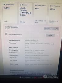 Monta un processore Intel i7 3770 3.40GHz , 16 giga di RAM 1600 MHz, Hard disk velocissimo SSD da 500 giga, scheda video dedicata Gigabyte RX 460 da 4 giga, lettore DVD, audio e lan integrati, tutto perfettamente funzionante. Windows 10 pro, pacchetto office , Photoshop e programmi vari pronto all'uso. Tastiera, Mause e Cavetteria inclusi nel prezzo. Vendesi ormai per mancato utilizzo, usato per giocare a Pes/efootball, Fortnite, Diablo e altri titoli a dettagli medio/bassi senza mai dare problemi . PC non di ultima generazione ma che ancora può dire la sua senza troppe pretese ad un prezzo contenuto. Per ulteriori info scrivete pure senza impegno, ma evitiamo offerte ridicole grazie.