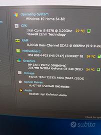 PC i5-4570/8 giga DDR3/ SSD da 500 giga/ GT 640