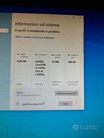 Vendo causa passaggio a noleggio Pc desktop HP Elite 8300 ultra slim Intel(R) Core(TM) i5-3470S CPU @ 2.90GHz - 8gb Ram - Hard disk 300gb. Comprende alimentatore, tastiera e mouse retroilluminate (gaming) + Monitor