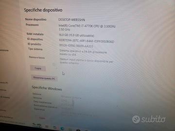 PC Fisso con processore i7 - 4770 scheda madre Gigabyte GA-Z87X Ram Hyperx 16GB SSD 350 GB win 10 installato Scheda video GEFORCE GTX 960 2gb Vendita a Bologna quartiere san donato