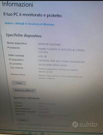 Vendesi postazione PC. Viene venduto con solo Windows 10 installato, qui di seguito le specifiche: