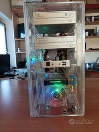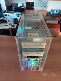 PC assemblato in un case ATX in Plexiglass trasparente. 4 FAN da 80mm di cui 2 FRGB.
