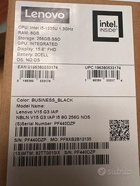 Pc portatile Lenovo CPU: Intel i5-1235U 1.3GHz RAM: 8GB Storage: 256GB SSD GPU: INTEGRATED Display: 15.6' FHD Battery: 2CELL Con caricabatterie