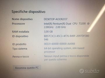 Laptop Pachard Bell con caratteristiche tecniche come da foto