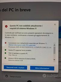 PC perfetto pari al nuovo, usato pochissimo, con Windows 10, ufficialmente non aggiornabile a Windows 11. Case e alimetatore. Monitor non compreso.