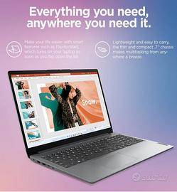Notebook Lenovo in condizioni perfette , un anno e mezzo di vita usato poco e sempre in casa con alimentazione quindi batteria con pochissimi cicli di ricarica, usato per scuola da mia figlia completo di mouse wireless, tutte le caratteristiche nelle foto, vendo perché non va bene per editing video che mia figlia adesso studia. Visione e ritiro a Sovizzo. NB. spedizione non disponibile.