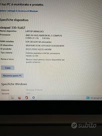Lenovo ideapad 330 15Ast AMD A9, radeon 8gb,hdd 1 tera. Perfetto consegna a mano Frascati, Monte Porzio. 90€ spedizione in Italia privatamente con poste 15€.