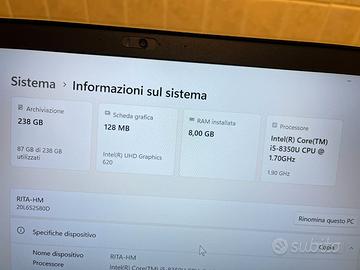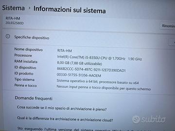 Vendo PC Lenovo T480 Ricondizionato Intel Core I5-8350U CPU 1.70GHz Scheda grafica 128 MB Ssd 256 GB Ram 8GB Display 14" Windows 11 Pro Batteria buone condizioni