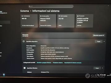Vendo per inutilizzo in perfette condizioni estetiche e funzionali. PC Lenovo ThinkPad L560 + Docking Station ThinkPad Pro Doc Intel Core i5 6ª generazione 6200U CPU@2.30 GHz (2.40 GHz) 16 GB RAM DDR3 SSD 500 GB Samsung 870 EVO Optical Drive HL-DT-ST DVDRAM GUEO Windows 11 pro ORIGINALE Office 2021 Doppio alimentatore originale