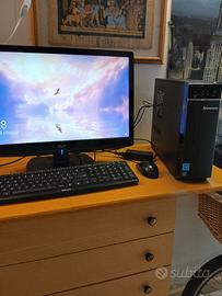 PC fisso mini desktop della lenovo, con monitor, tastiera,mouse.