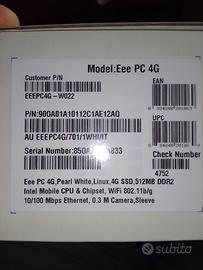 Bellissimo PC notebook EEE PC 4G ASUS con RAM 1024 aggiornata, COME NUOVO con scatola originale e accessori, lo avevo configurato in dual boot con Android + Windows 7, ma lo fornisco con SO originale Linux reinstallato dal CD originale in dotazione, + regalo masterizzatore DVD Benq USB per registrare e leggere CD e DVD.
