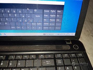 PC Notebook Toshiba Funzionante è vecchio un po' lento la batteria è da sostituire funziona con la presa di corrente e la tastiera non funziona bisogna usare quella a video. per pezzi di ricambio o per chi può rigenerarlo.