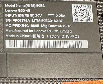 Vendo pc portarile Lenovo G50 in ottime condizioni configurarocome segue