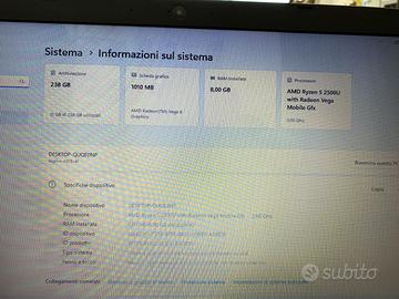 Notebook, Pc Portatile BrandAcer Condizioni Ottime Processore AMD Ryzen 5 2500U VGA 1 GB RAM 8 GB Capacità di archiviazione 256 GB Sistema operativo Windows 11 Dimensioni dello schermo 14"-15.9" (35-39 cm) Caricabatterie incluso Incluso Layout di tastiera QWERTY ITA