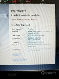 PC portatile Acer Aspire 6930c, usato funzionante con Windows 10, scheda video Nvidia da 512 mb, processore Intel dual core da 2.00ghz, ram da 4 gb. Si cede con borsa per portatile, trasformatore con cavo di alimentazione e mouse. Schermo da 16 pollici. Prezzo trattabile.
