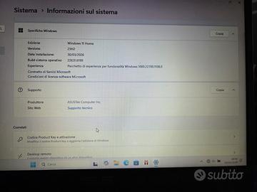 PC Portatile ASUS VivoBook 15 – Perfetto per uso quotidiano Vendo laptop ASUS VivoBook 15 in ottime condizioni estetiche e perfettamente funzionante. Con caricabatterie originale. Appena formattato e pronto all’uso. Sistema operativo Windows 11 Home originale. Ideale per: Navigazione internet Netflix, YouTube, streaming Office (Word, Excel) Email e utilizzo quotidiano Specifiche: Processore: Intel Celeron N4000 RAM: 4 GB Archiviazione: 466 GB Scheda grafica: Intel UHD Graphics 600 Schermo: 15.6" Batteria in buone condizioni, con buona autonomia per uso normale. PC perfetto per studenti o come secondo computer per casa. Venduto già formattato, senza dati personali.