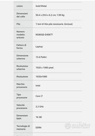 PREZZO TRATTABILE Vendo PC Portatile ASUS VivoBook Pro N580GD-E4087T *Caratteristiche principali:* - *Display:* 15.6” Full HD - *Processore:* Intel Core i7-8750H - *RAM:* 16 GB - *Hard-disk:* SSHD - *Scheda video:* NVIDIA GeForce GTX 1050 4GB - *Sistema operativo:* Windows 10 Home - *Altre info:* Tastiera retroilluminata, USB-C, HDMI, lettore impronte digitali Condizioni: usato con cura e pochissime volte, funzionante al 100%