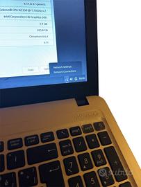 Asus X540N Notebook si accende ma presenta diverse criticità tra cui problema alla tastiera, alla cerniera (come da foto), batteria non presente, disco interno non presente e scheda Wi-Fi non presente il pc si avvia senza problemi su Linux mint, ottimo come pezzi di ricambi come display, scheda madre, casse, lettore dvd/cd, le specifiche tecniche sono: CPU: Intel Celeron N3350 GPU: Intel UHD Graphics 500 RAM: 4 GB DDR4 On-board testate con Memtest