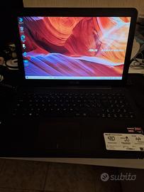 Pc portatile Asus X555b con processore AMD A9-9410 Dual Core 3.5GHz, schermo da 15,6", con masterizzatore dvd, Windows 10, portato a 16gb di RAM cambiata memoria interna da hard disk meccanico a ssd da 1tb. Vendo con caricatore incluso.