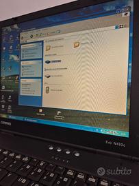 PC portatile primi anni del 2000 Compaq Evo N410c con installato Windows, office e qualche altro programma. Perfettamente funzionante ma senza batteria. Il collegamento al wi-fi è possibile tramite cavo di rete o chiavetta usb.