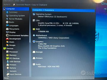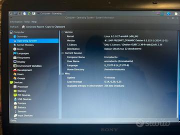 Hard disk veloce 250 gb memoria, i3 cpu, 8 gb ram. Sistema operativo Linux, versione Emmabuntu. Con mouse e caricabatterie.