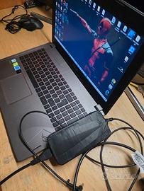PRIMA DI VENDERLO POSSO ESEGUIRE LA SOSTITUZIONE DELLA PASTA TERMICA a seconda della preferenza Vendo pc portatile asus Il notebook fa parte della famiglia Asus Rog strix la serie gaming e più prestazionale del gruppo asus. Il Pc è perfettamente funzionante ma come tutti i Pc da gaming la batteria dura poco (1 oretta se non attaccato al caricatore) per avere la massime prestazioni deve rimanere collegato ("difetto" di tutti i pc da gaming ) È un Pc ottimo e nonostante una RTX1060 si comporta benissimo con molti giochi (usato senza problemi Fortnite, Apex, Roblox, minecraft e GtaV) , è stato utilizzato anche con programmi di modellazione come Fusion, meshmixer o blender e anche questultimi li regge. Possiede un intel core I7 di 7th con una scheda video GTX1060 con 6gb, una ram di 16gb e una memoria da 1.25tb 1250gb. Il Pc è stato sfruttato e presenta segni di usura ma è ancora una bomba. Possiede la tastiera retroilluminata e i tasti si leggono tutti alla perfezione. Venduto senza scatola con caricatore originale (con del nastro perchè si stava rovinando sulla parte pieghevole) Prezzo leggermente trattabile
