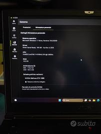 -SSD Nvme M.2 128 GB (Su cui installato Sistema Operativo Win11)