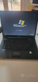 Pc portatile marca HP modello Compaq nx7300 wifi com masterizzatore DVD,sistema operativo windows XP,la batteria non regge tanto ma con alimentatore si,a volte lo spinotto del cavo alimentatore se non è dritto non connette bene e c'è da sostituire la batteria tampone interna.Processore 1.7 ghz 1 gb di ram.