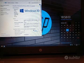 PC portatile HP Intel Celeron N3050 2GB SSD 32GB Windows 10 perfetto, con cover usata, caricatore originale e imballaggio originale. Solo se interessati fate domande o proposte sul prezzo.ACCETTO PROPOSTE, DEVO LIBERARE SPAZIO