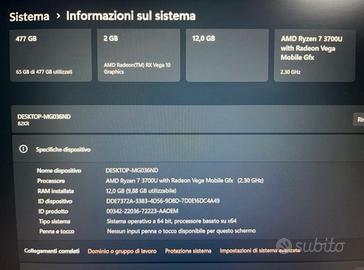 Vendo pc portatile Lenovo IdeaPad 3, con le seguenti caratteristiche: Ryzen 7 3700 U, scheda video integrata Radeon Vega Gtx,
