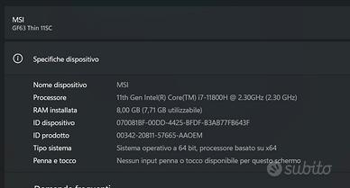 Vendo notebook MSI performante in ottime condizioni.