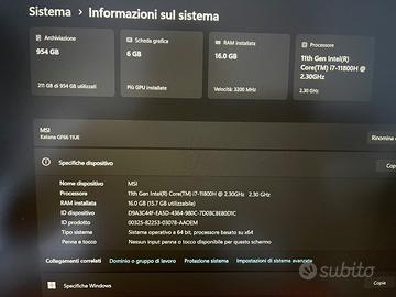 MSI KATANA GF66 11UE-042IT in perfette condizioni. Processore Intel Core i7-11800H 2,3 GHz. RAM 16 Gb DDR4. HD SSD 1TB. Scheda grafica nVidia RTX 3060 6 Gb. LCD 15,6” Full HD antiriflesso. Wireless 802.11 ax. USB 2.0, HDMI. Videocamera incorporata. Borsetta porta PC inclusa.