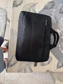Pc portatile con borsa porta pc e cavetto per ricaricare sistema operativo Windows 11.
