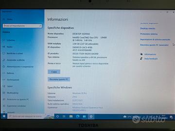 Notebook Toshiba Portege A600, display 13", Windows 10 originale, ssd 128 gb, 3 gb ram espandibile fino a 8. Wi-Fi e Bluetooth integrati, lettore/masterizzatore dvd e di schede. La batteria dura più di 4 ore. Ottimo per Dad. Qualsiasi prova.
